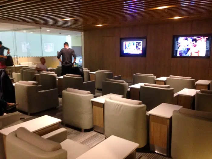 Chegamos na sala vip da AA, apresentamos os cartões de embarque e o acesso foi liberado. Mesmo a conexão não sendo muito longa foi bom poder descansar em um ambiente calmo e confortável, com opções para dar uma enganada na fome. Cerca de 20 minutos antes do início do embarque, foi informado que em breve este teria início.