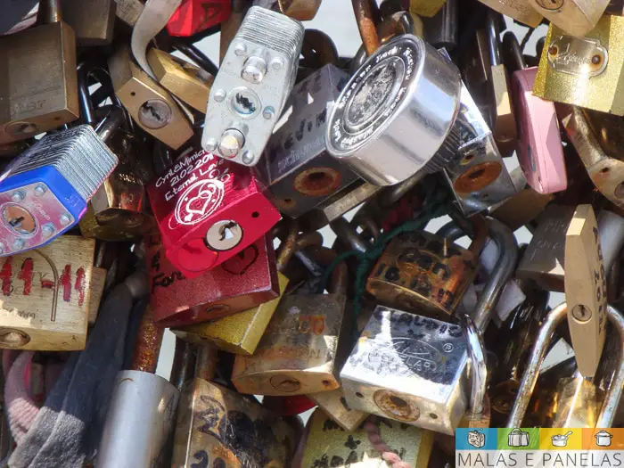 Cruzamos também a Pont de l'Archevêché, cheia de cadeados. Se estiverem pensando em deixar o seu por lá, leve de casa, pois as lojinhas ali por perto cobravam uma fortuna por um cadeado pequeno.